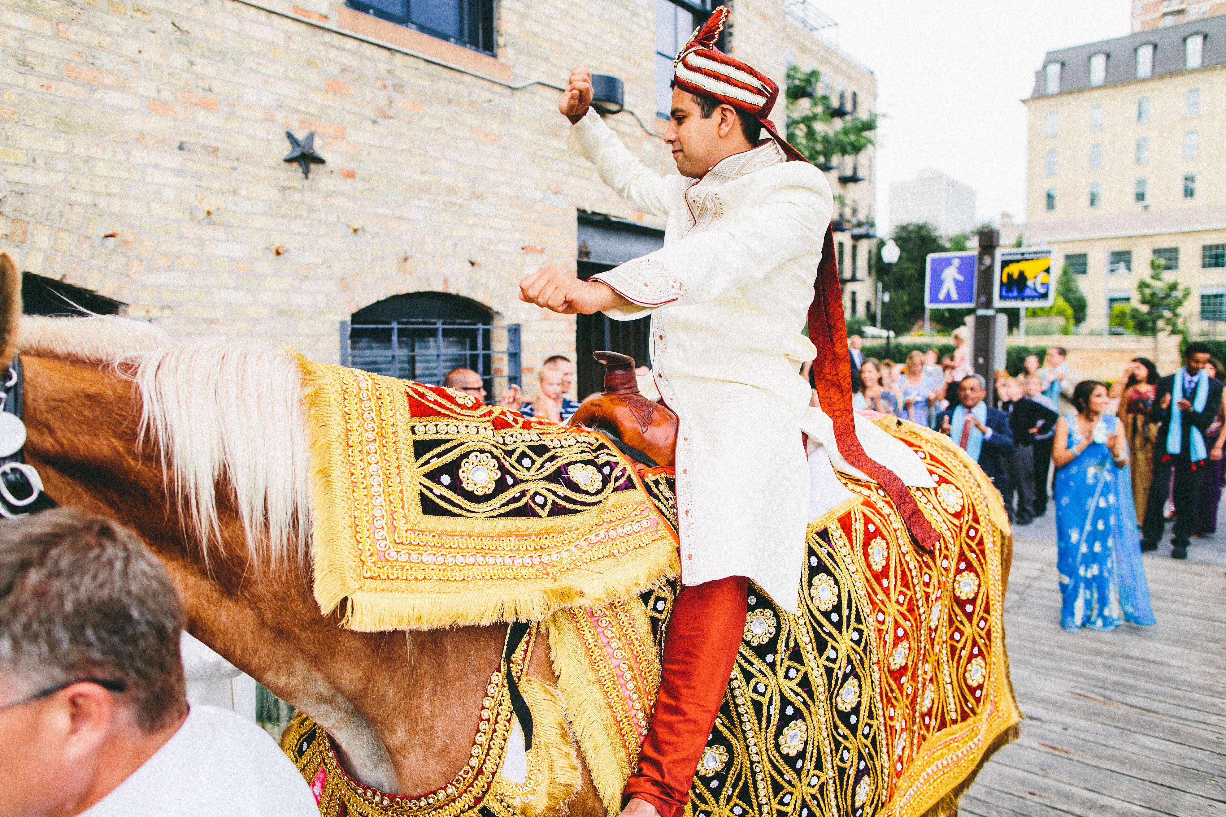Aneel arrives on horseback amid music and a cheering crowd.