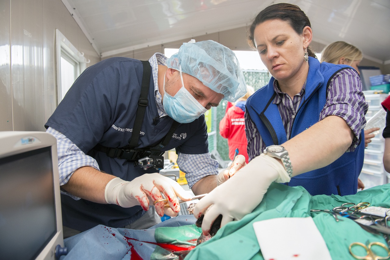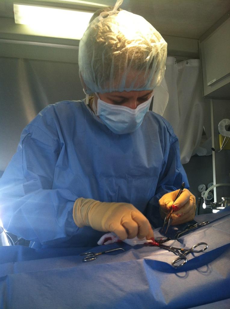Lesanna assisting with surgery on injured, rescued sea otter