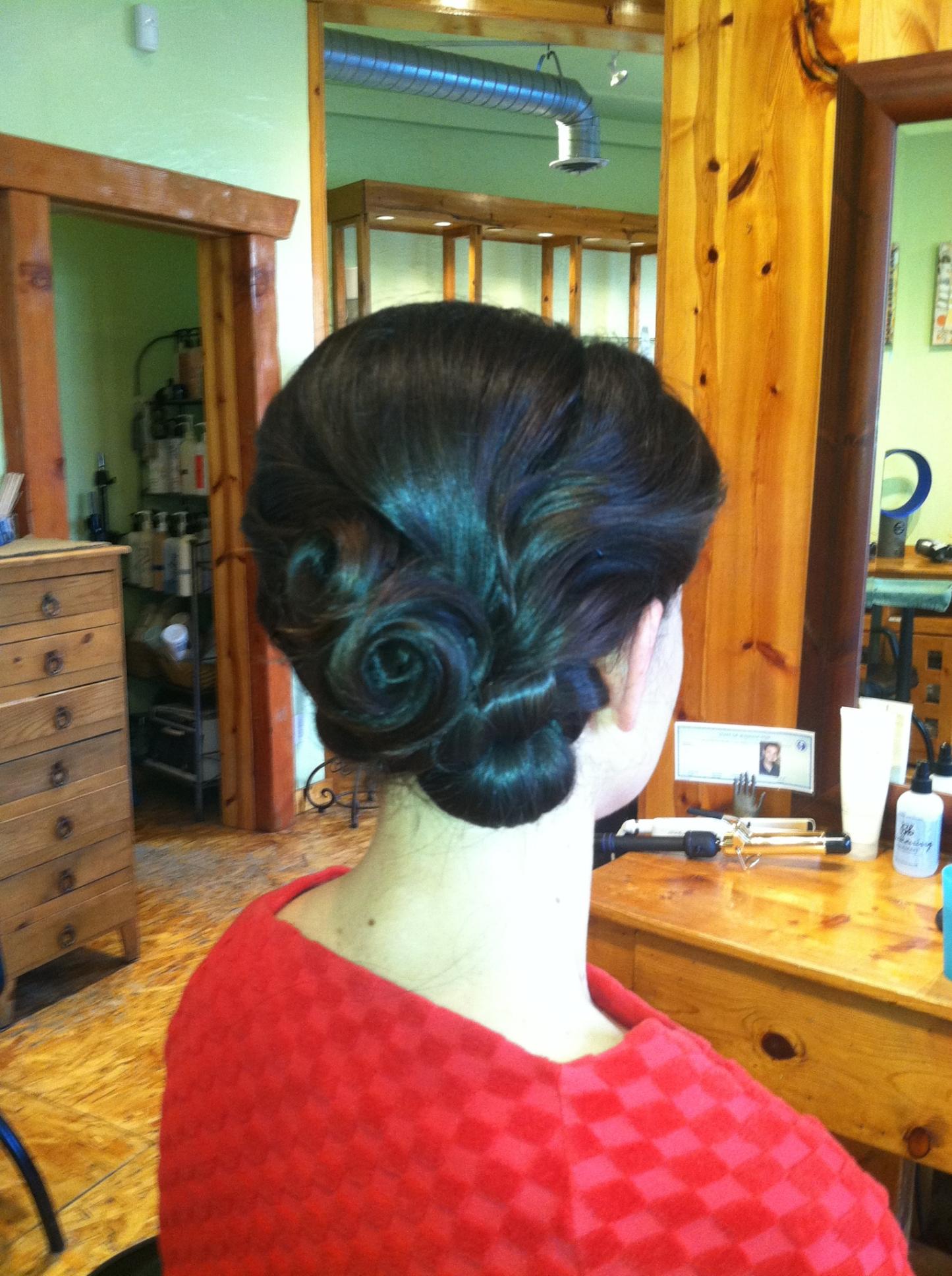 Lesanna with fancy hair for an Aquarium gala.