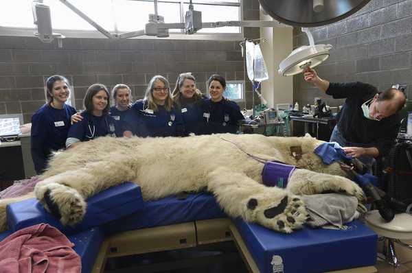 Polar bear surgery (Lesanna at center behind bear)