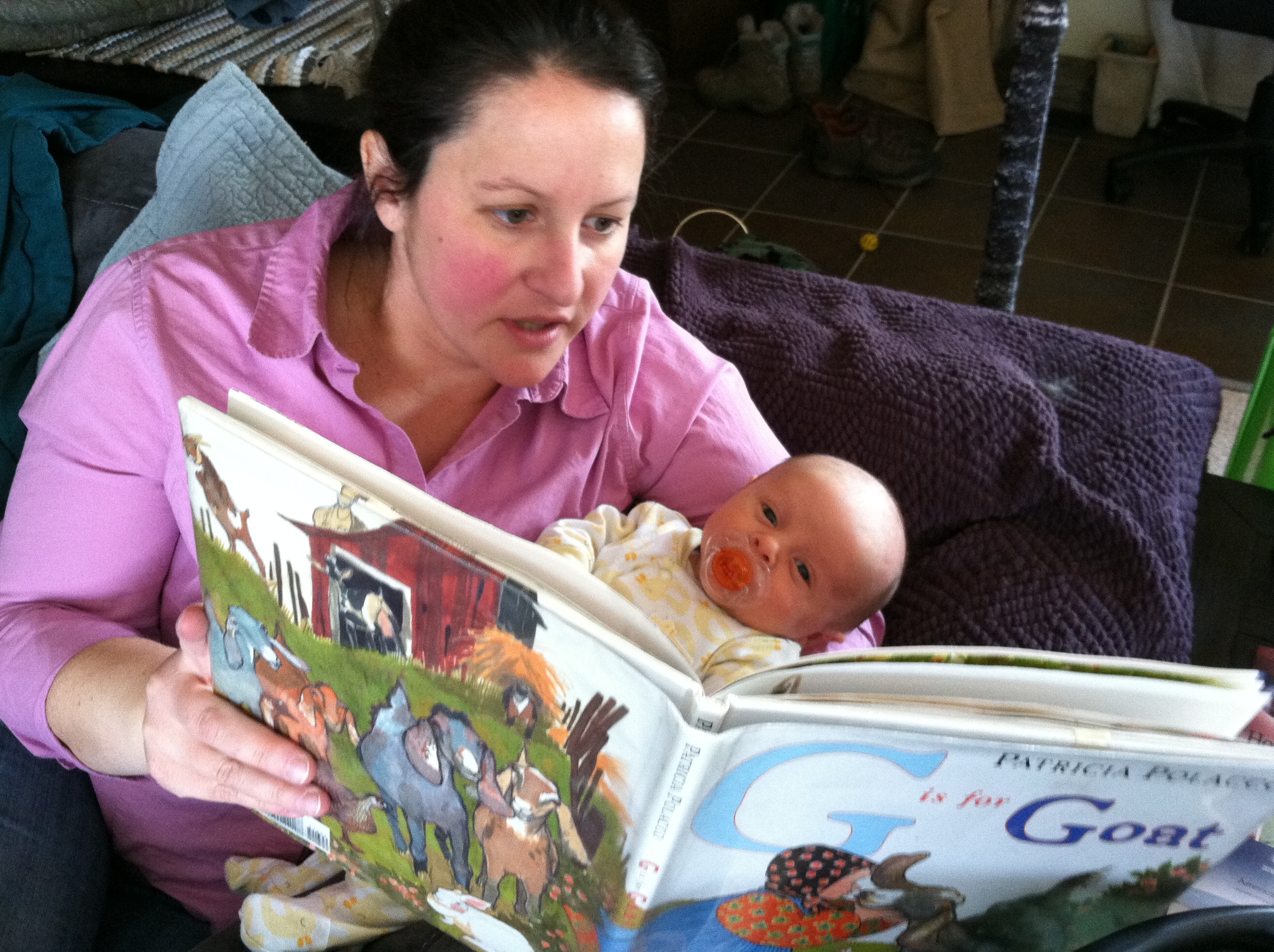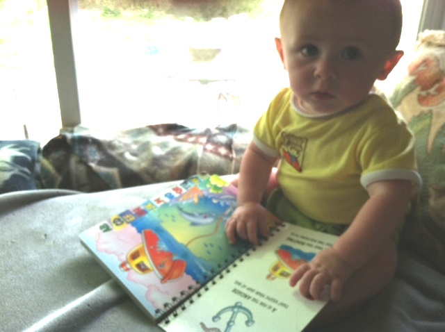 Talus outside in the hammock with Mom, June 2013, Goathead
