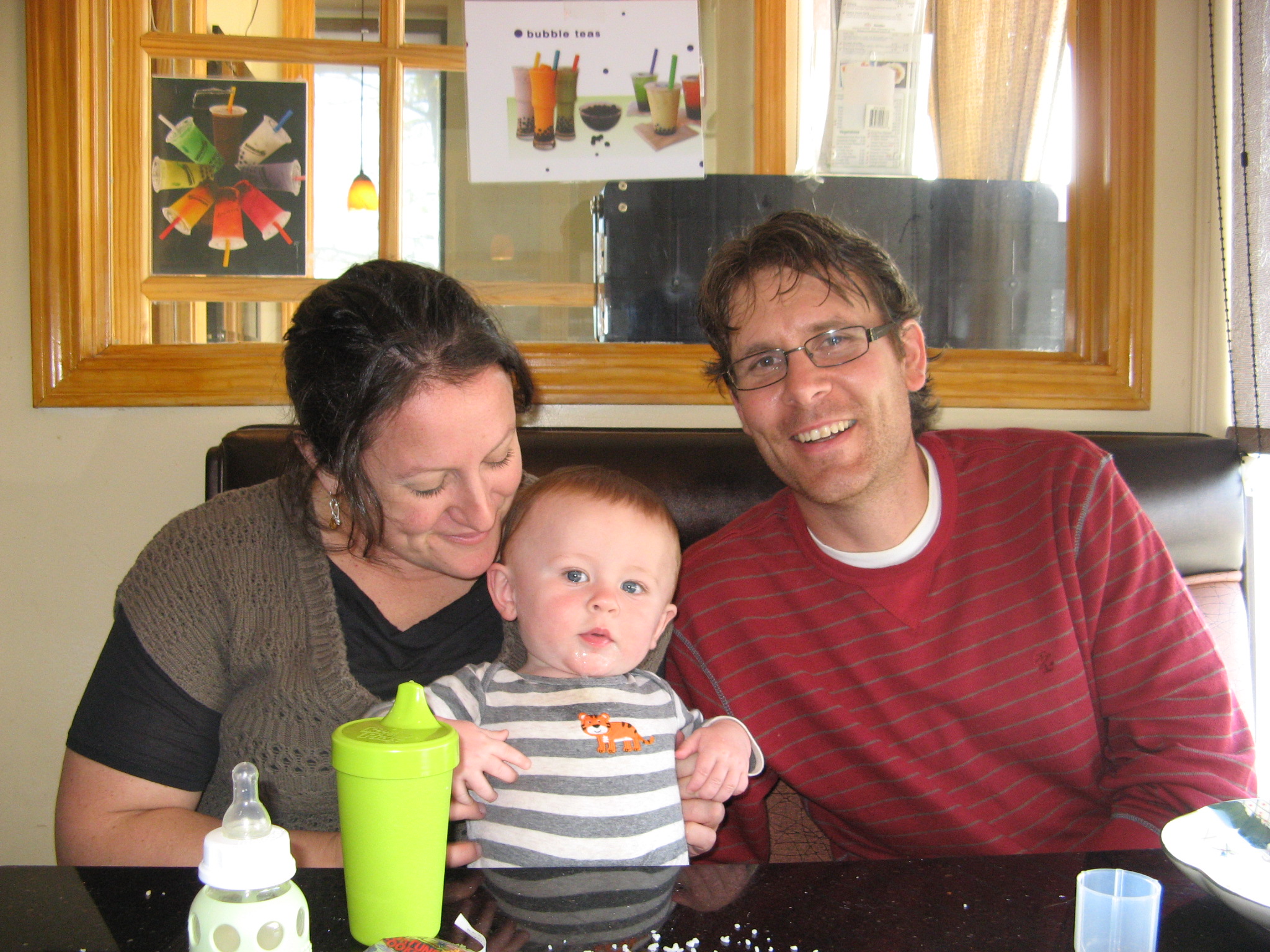 Jaslyn, Talus, Jim at restuarant with Great Great Uncle Brian. Sounds old but he is younger than Grandma Rosalyn.