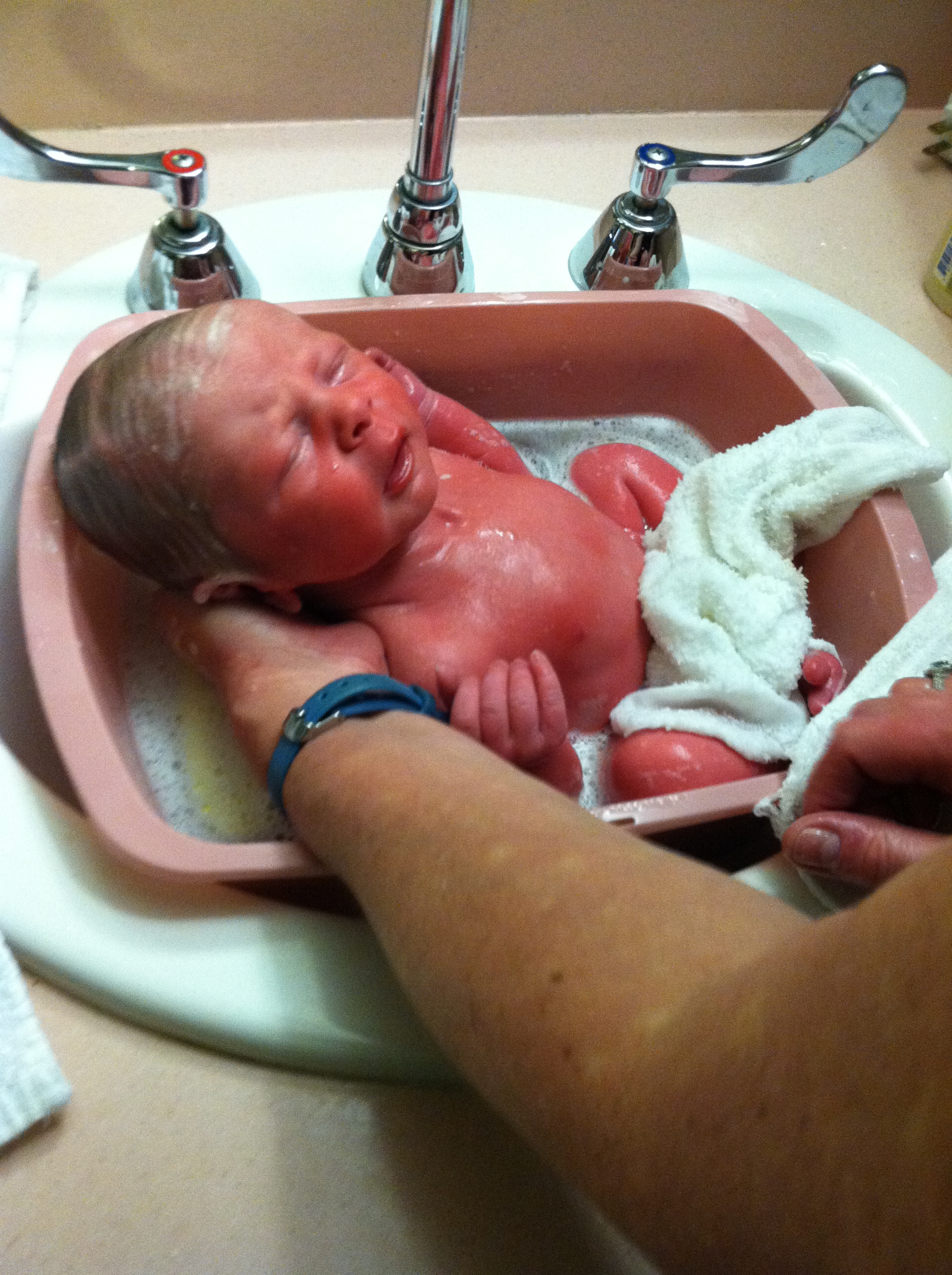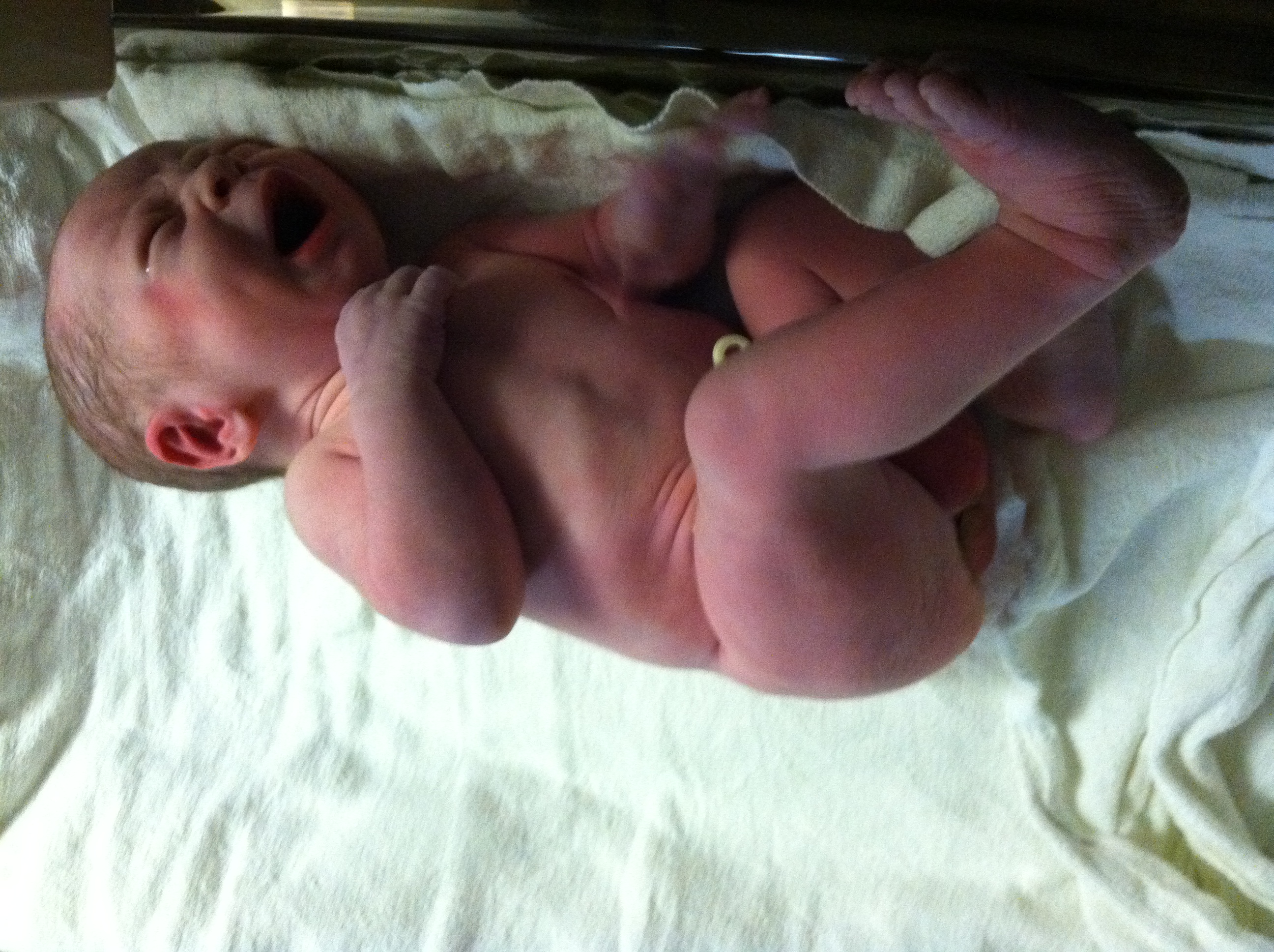 Talus, moments after birth. Very mad. You can see dimple on right cheek.