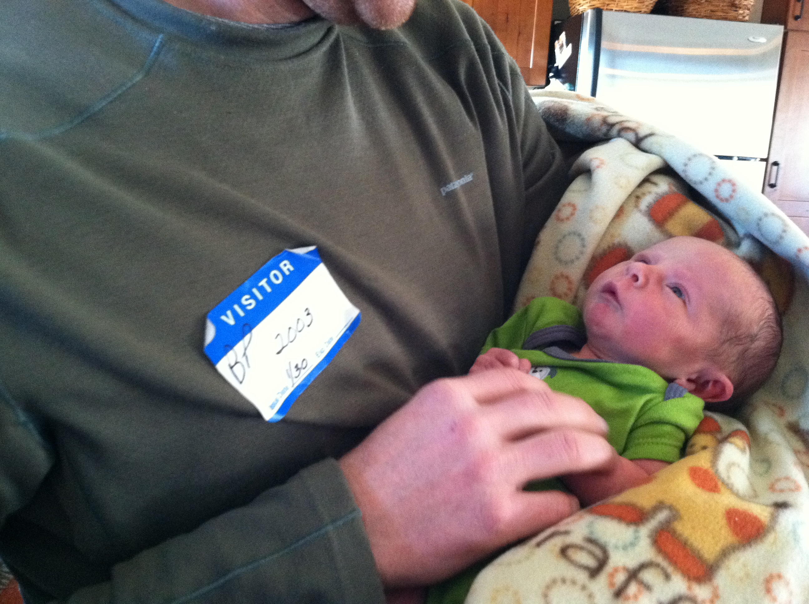 Talus meeting Dad moments after birth at the hospital in Boulder.
