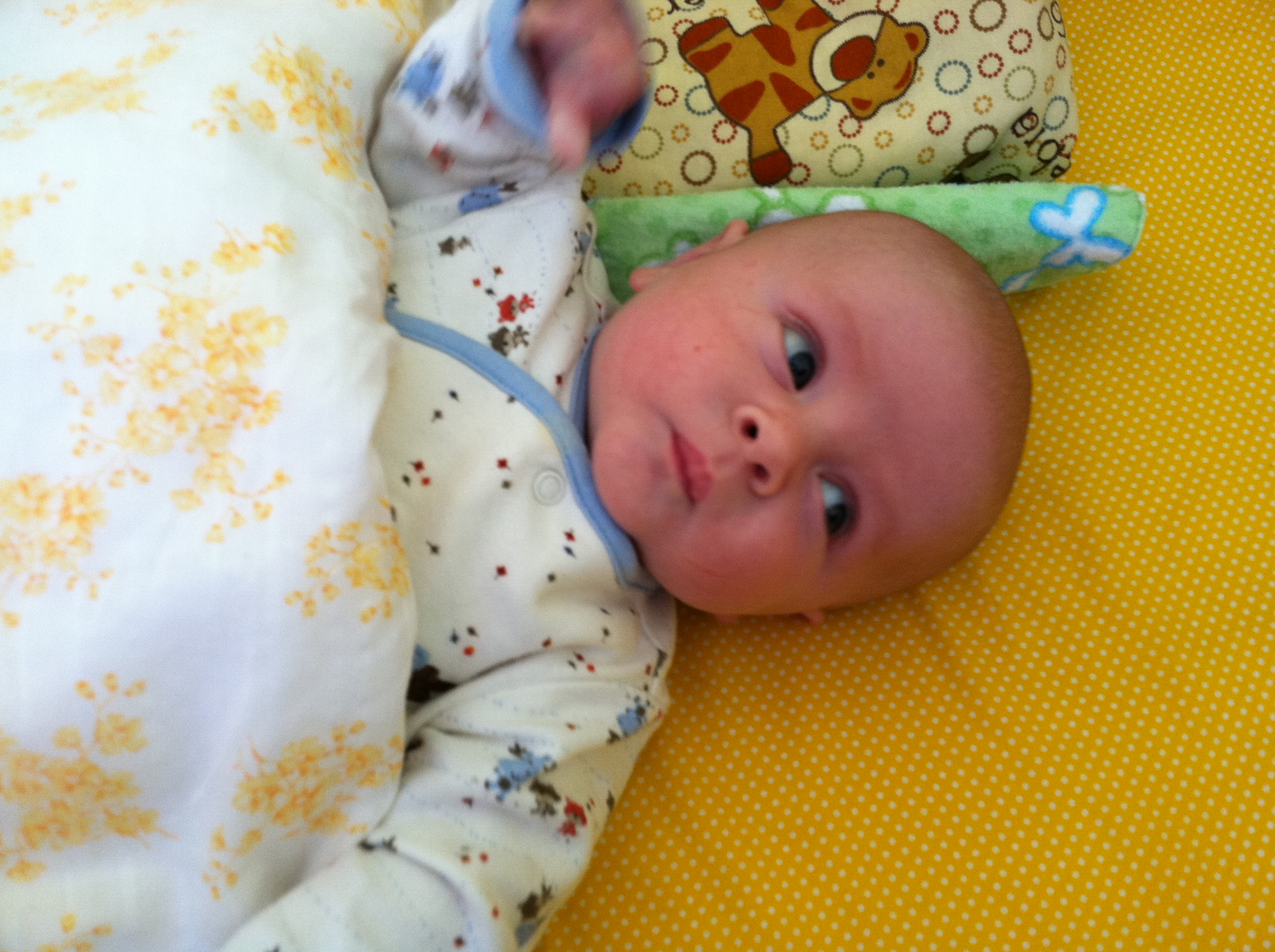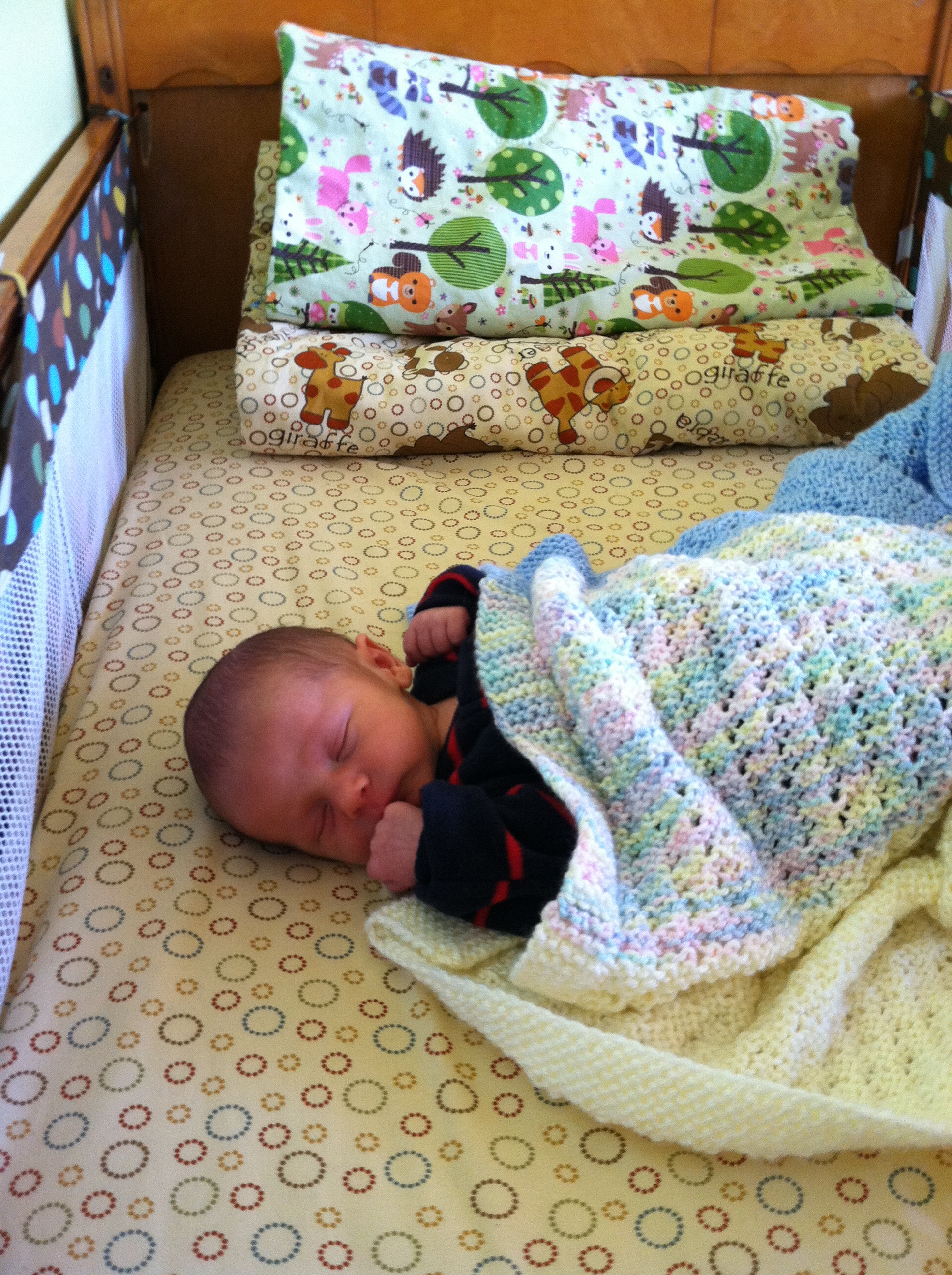Talus with bedding made by Grandma Rosalyn (either for him or for his mother)