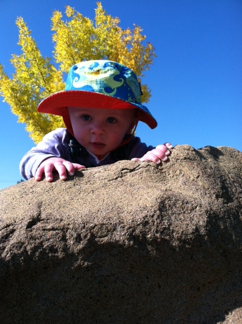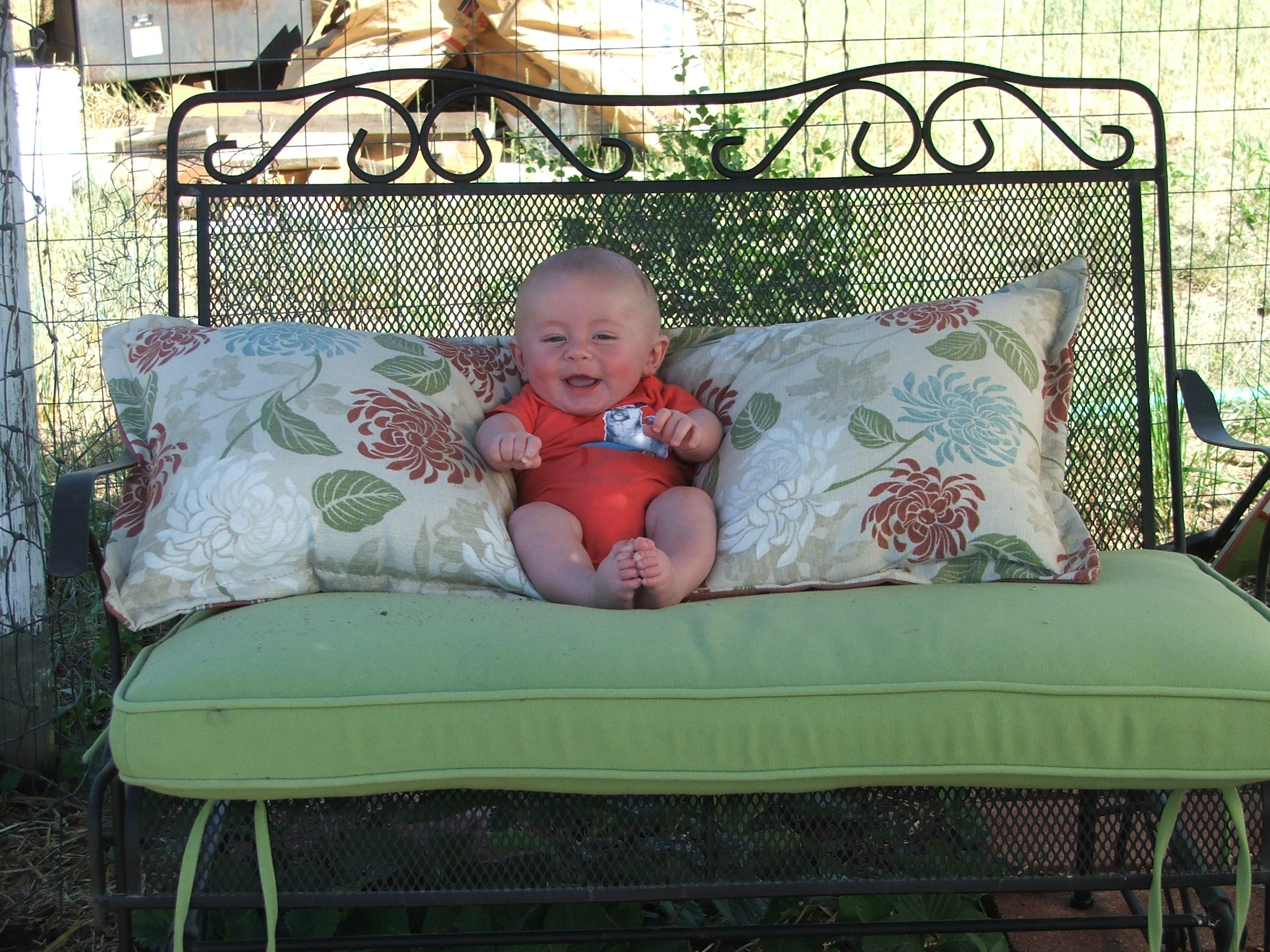 Talus on Bench Laughing, June 2013, Goathead. One of the cutest baby pictures ever!
