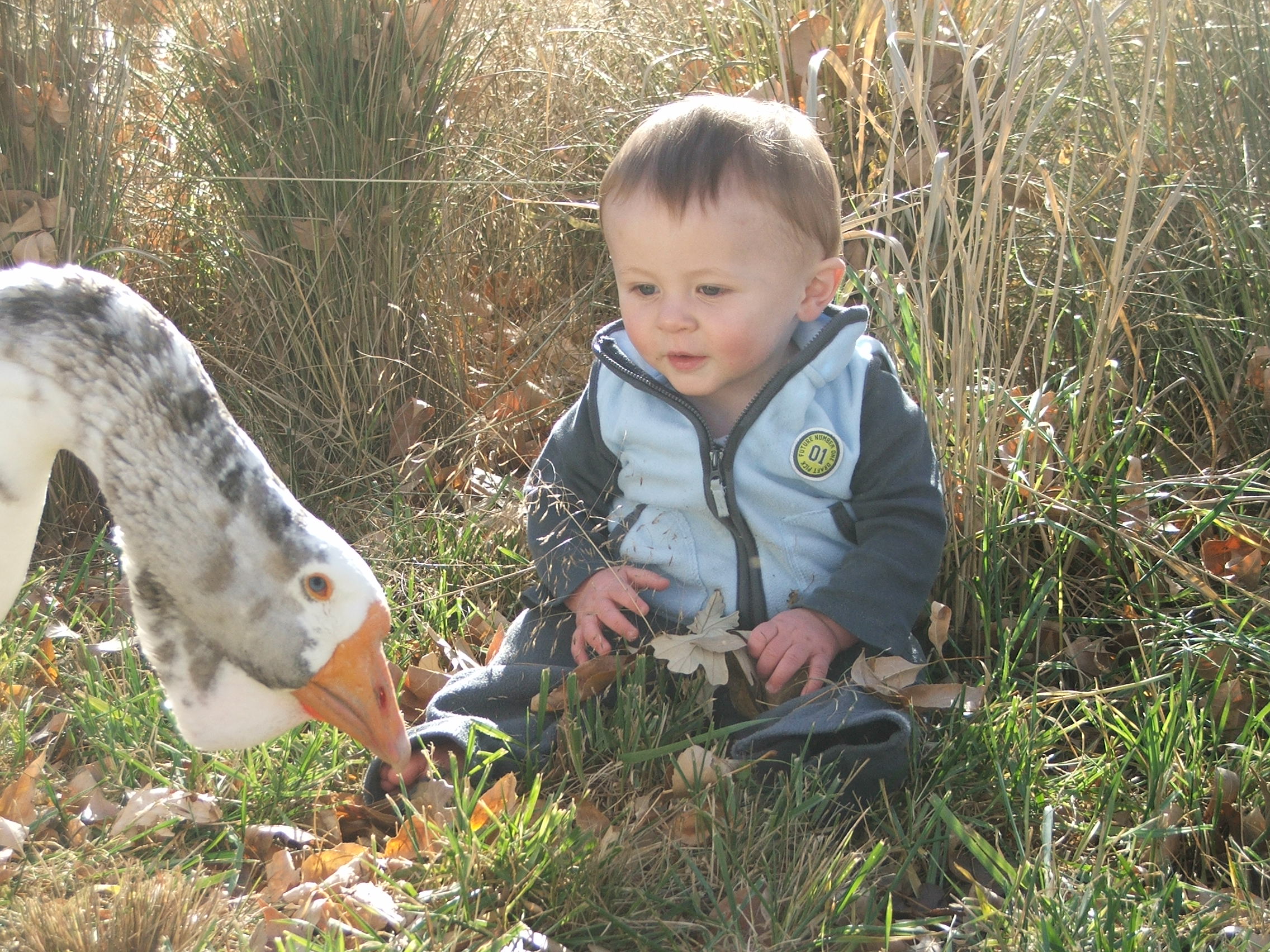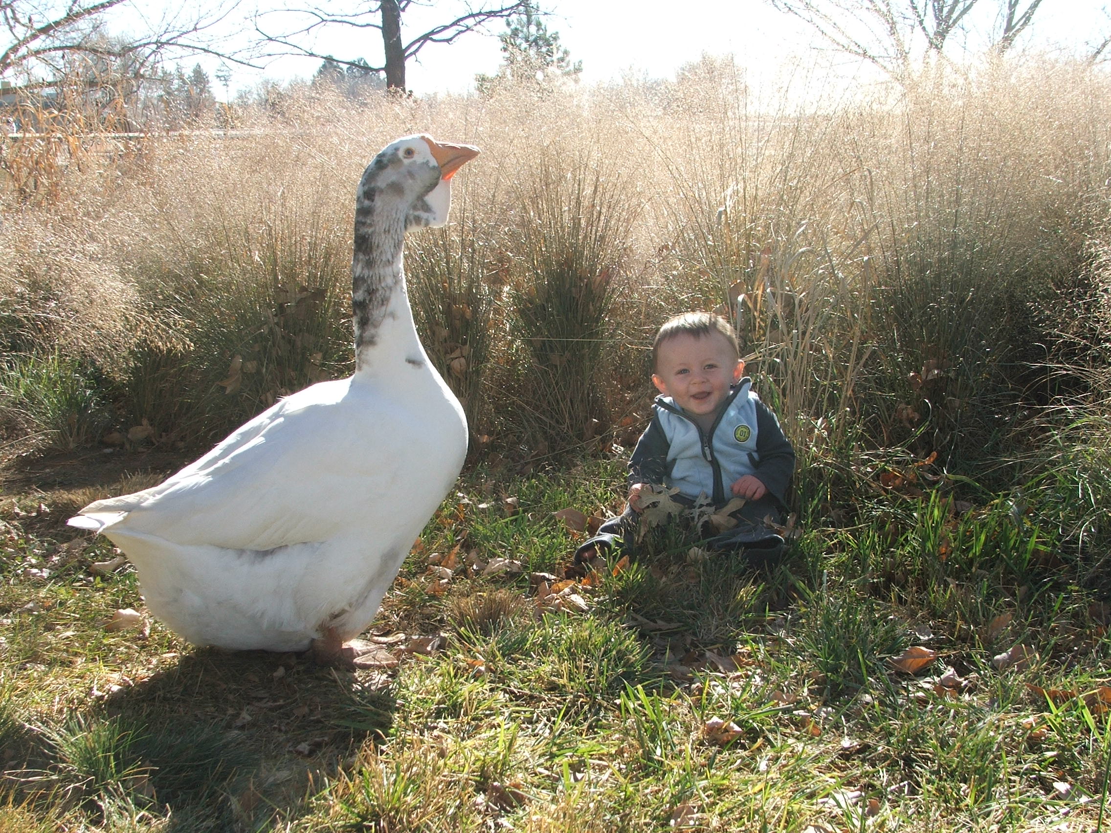 Talus and guardian goose Gargamel, November 2013, Goathead Ranch (Jaslyn and Jim's home)